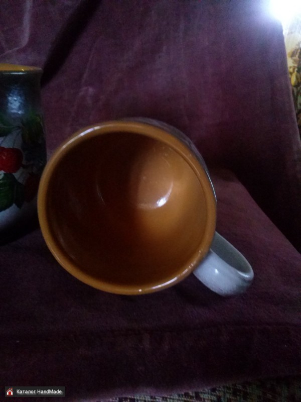 Керамическая пара, кружки покрыты глазурью, художественная роспись, авторская работа.