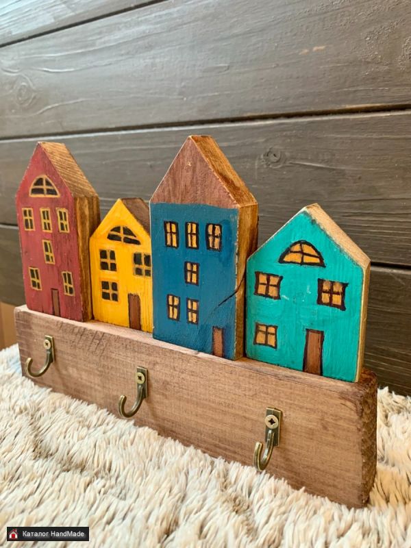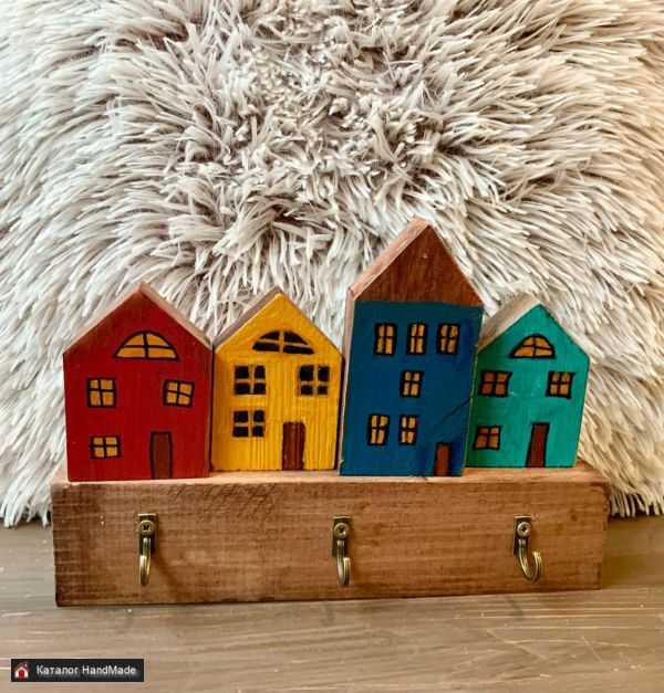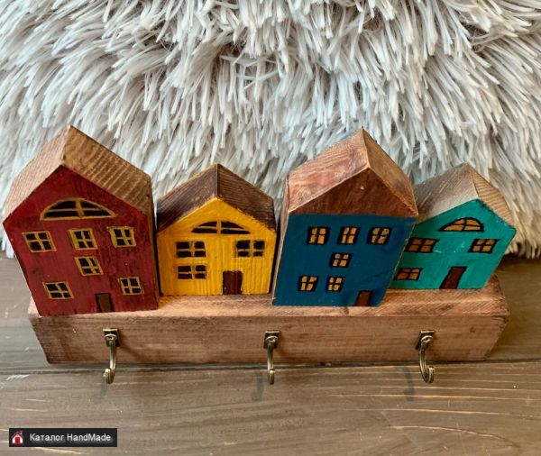 ключница из дерева Домики Амстердам