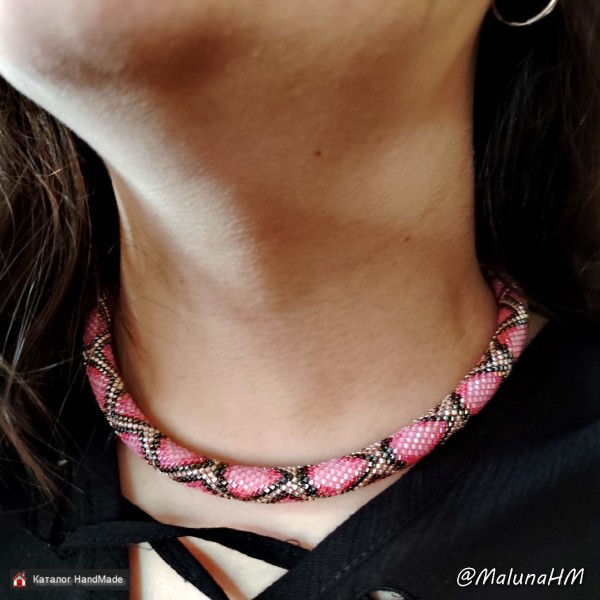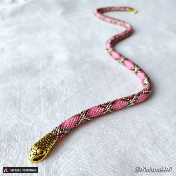 Размер: 43 см длина бисерной части, 47 см длина изделия. Материалы: японский бисер Miyuki Delica, хлопковая пряжа, металлическая фурнитура. Условия хранения и использования: беречь от растяжения и ударов, а также пыли, влаги, агрессивных сред и загрязнений.