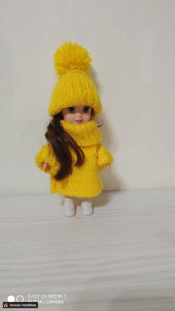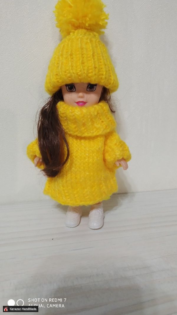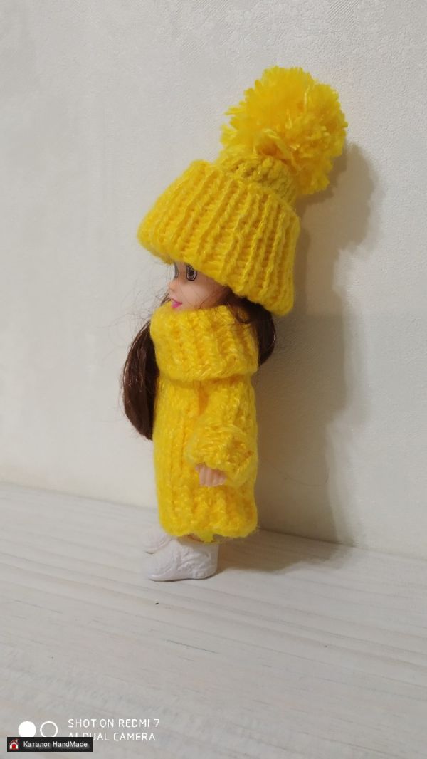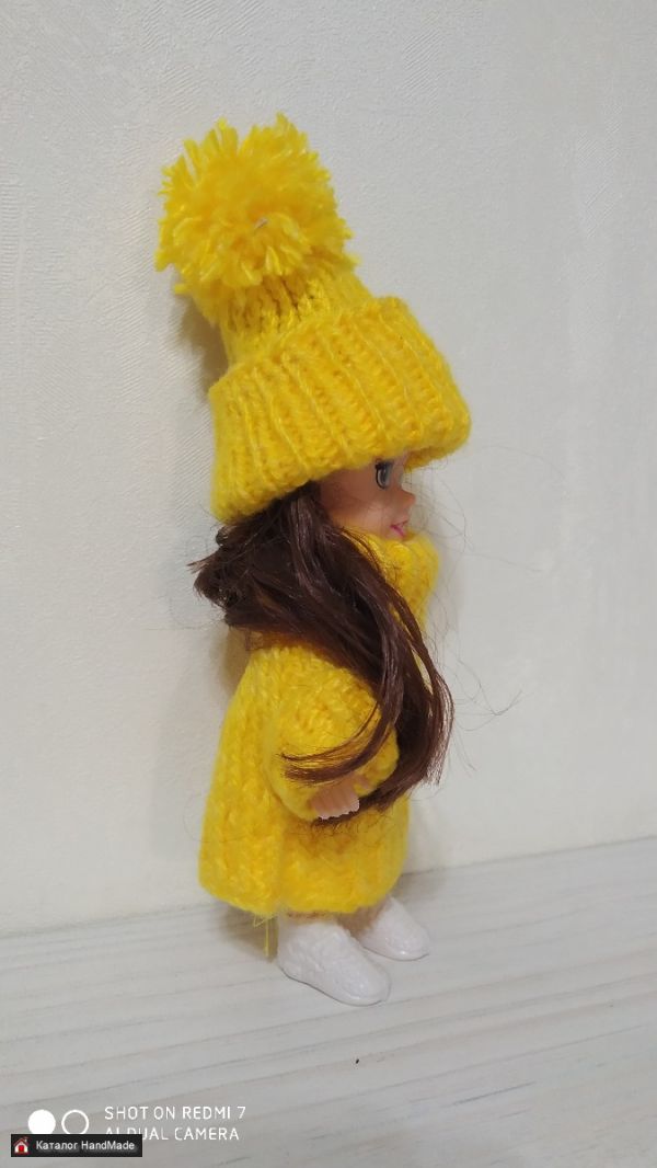 Комплект для куклы желтый: пальто и шапка