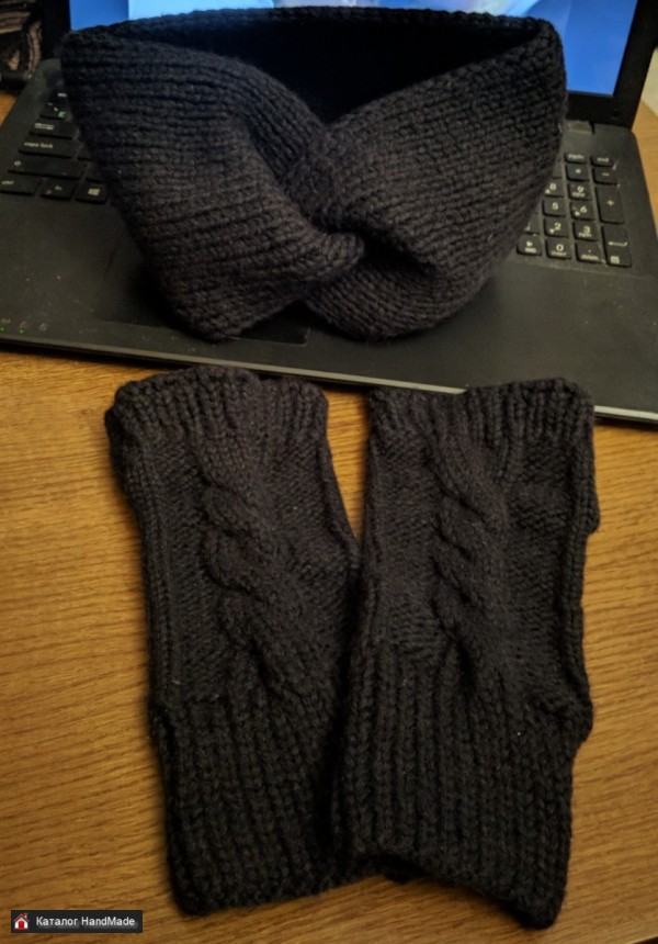 Отличное решение для тех кто не любит шапки. Комплект ручной работы повязка и минетки.
