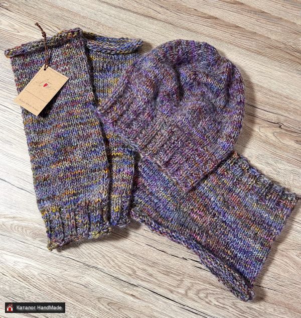 Вязаный комплект Шапка-бини и шарф-снуд, унисекс, связан из пряжи класса люкс: меринос Малабриго и кид-мохер - лёгкая, мягкая и тёплая пряжа оригинальной расцветки (ручная окраска).