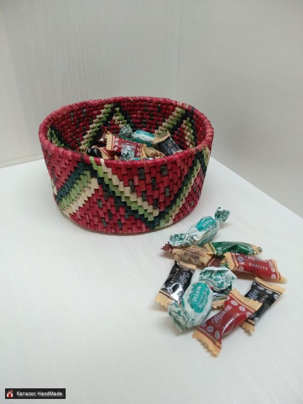 Вазочка сплетена вручную из талаша. Талаш - это листья початков кукурузы- экологический материал. Очень крепкий и надежный материал. Плетение плотное, надежное, долговечное. Красители использован пищевой. Изделие не покрыто лаком, поэтому применимо к пищевым продуктам. Ваза пркрасно смотриться в любом интерьере. Сочный цвет и узор арбузика греет взор в дождливые и зимние времена. Летом радует глаз своими красками. Кусочек лета в любое время года. 2 сувенирных веничка в подарок. Диаметр - 13 см. Высота - 6 см. Станет прекрасным приобретением для Вас, подарком Вашим близким, друзьям. Приятное соотношение качества и цены. Полностью ручная работа от сбора материала для плетения до конечного результата - изделия. Цена указана с пересылкой по Беларуссии.