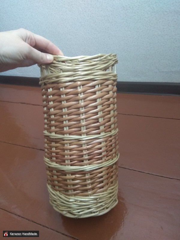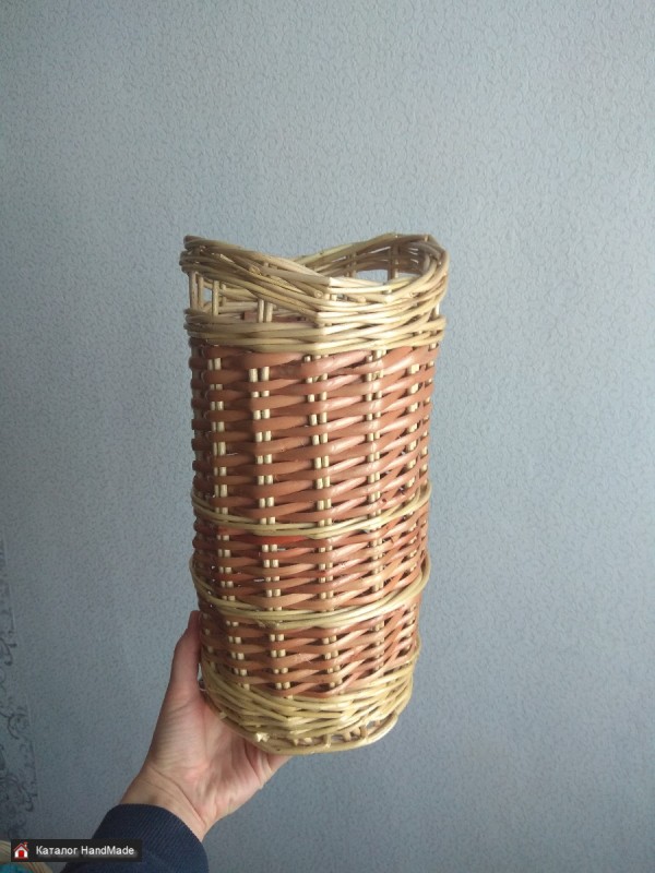 Корзина сплетена из натуральной лозы. Диаметр донышка - 15,5 см.Высота - 30,5 см.