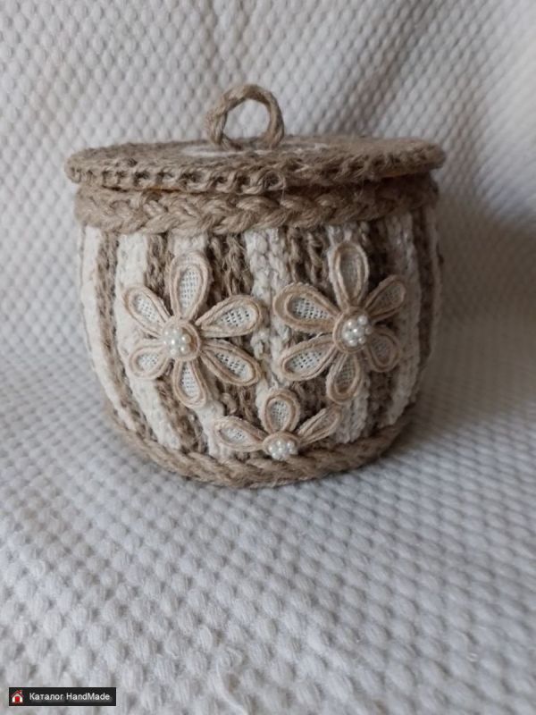 Корзинка-бочонок из джута