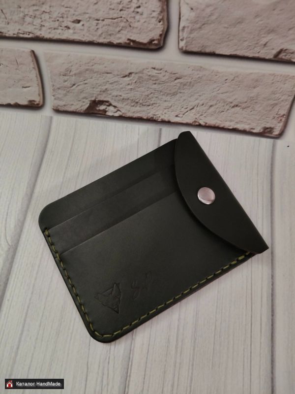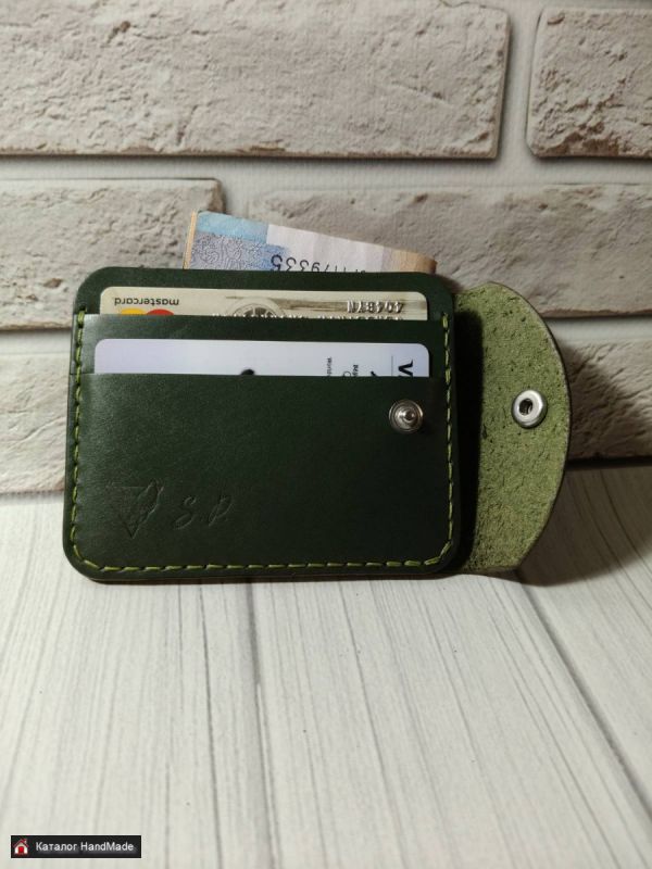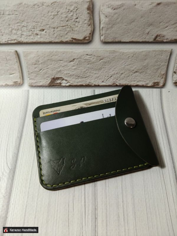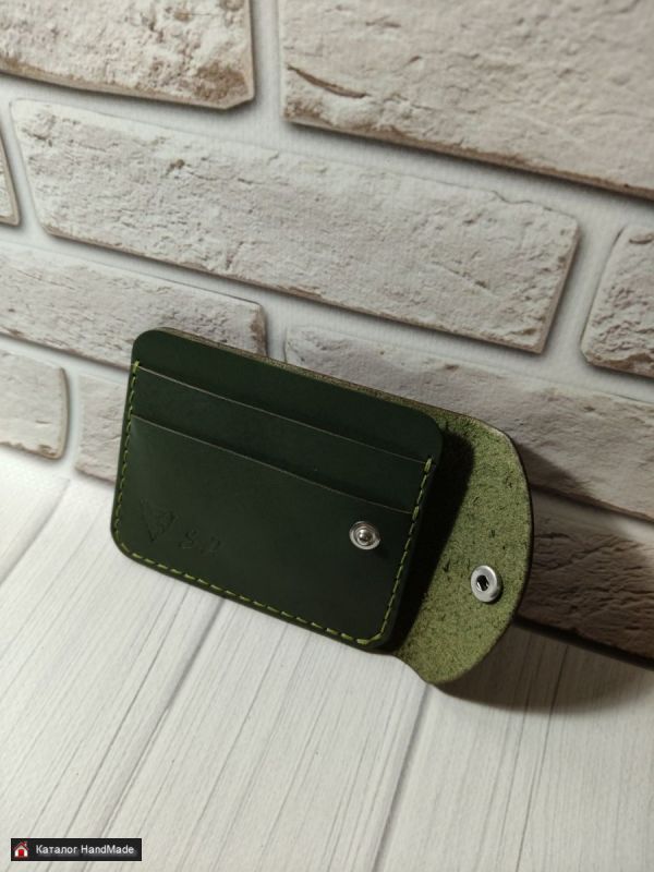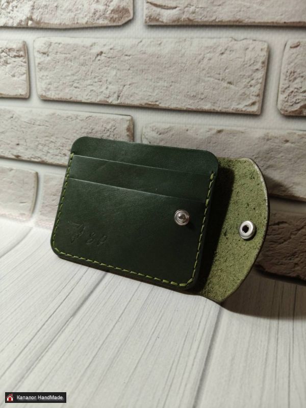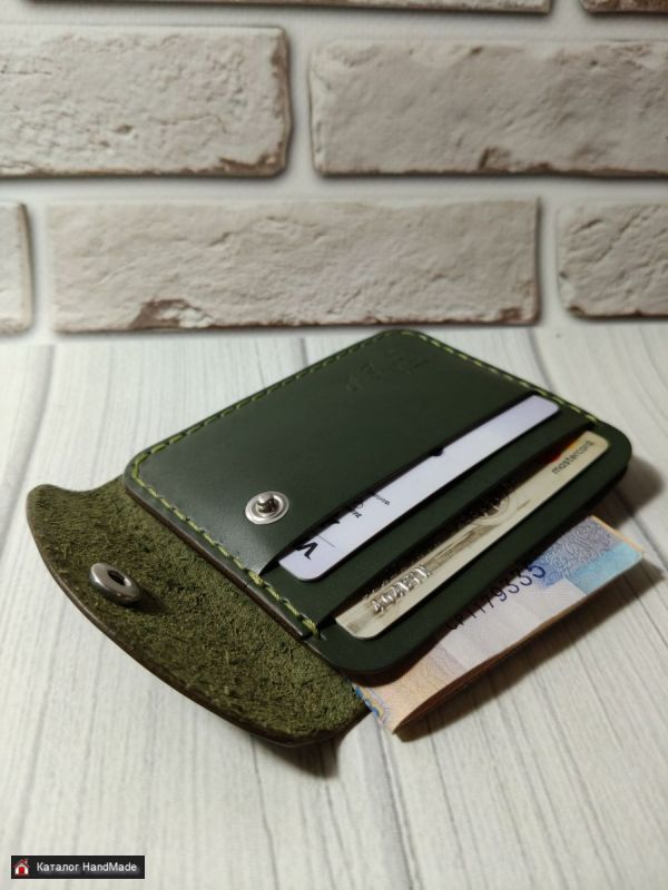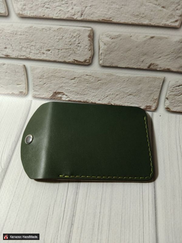 Кошелек-картхолдер из натуральной кожи, цвет Оливково-зеленый. Размер 8*10 см. Два отдела для карта и отдел для купюр в сложенном виде. Изготовление в других цветах в течение 1-2 рабочих дней.