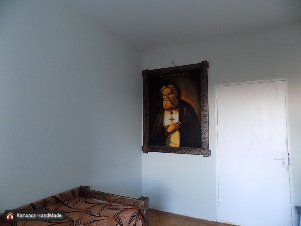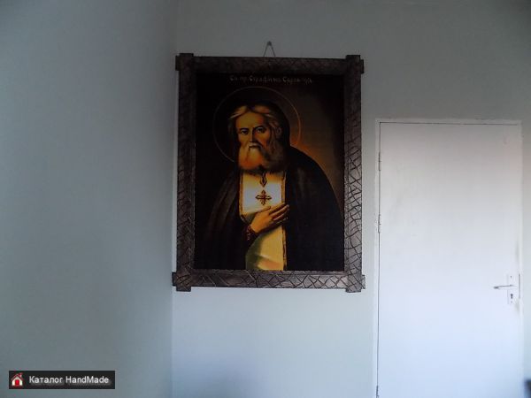 Ковёр (с изображением Серафима Саровского) на стену в деревянной раме. Рама ручной работы внешние размеры: 120х150см.