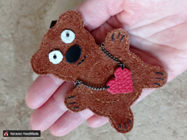 Изделие выполнено из натуральной кожи. Мишка выполнен из двух слоев мягкой замши, все элементы приклеены и прошиты. Шнурок натуральная кожа.