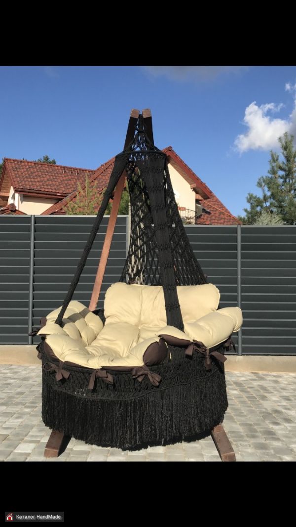 Подвесное кресло Cartagena Lux с мягкими и комфортными подушками, сплетено вручную из полиамидной нити (не выгорает, не растягивается). Чехлы для подушек сделаны из хлопкополиэфирной ткани, которая не теряет формы, износостойкая, не мнётся, держит цвет, хорошо «дышит». Наполнитель подушек - «холлофайбер» - материал не отсыревает, легко стирается. Вес кресла с подушками - 20кг. Выдерживает вес 200кг. Цвет нити - чёрный. Каркас продается отдельно.