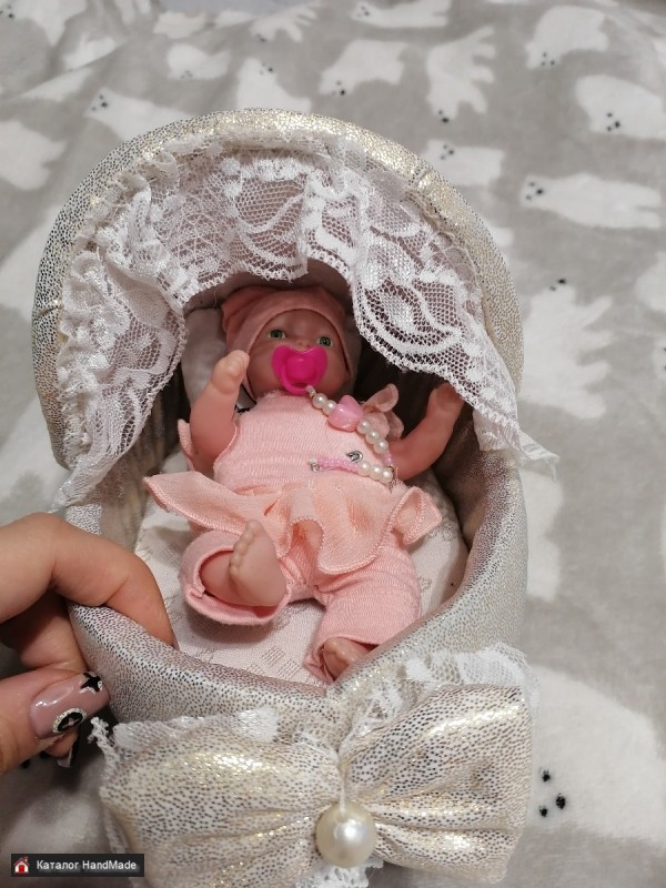 Люлька кроватка с подушечкой для куколки до 15 см. Невероятно красивая.