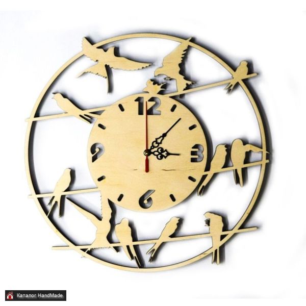 Круглые часы настенные интерьерные из дерева с ласточками удачно смотрятся в любом интерьере!