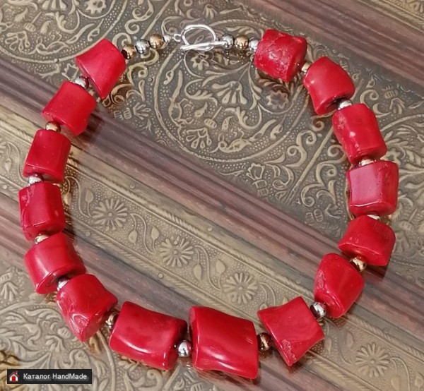 Материалы: коралл, коралл bamboo, красный коралл, посеребрённая фурнитура, качественные материалы, качественная фурнитура Размер: Длина украшения 53 см. Самый крупный камень объёмный и размером 3 *3 см.