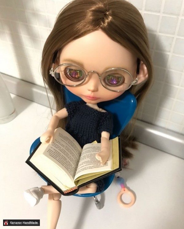 Шарнирная Кукла Блайз, Выполнено: - карвинг лицевой панели; - сделан кастом, закреплённый клиром, - заменены 4 пары зрачков, одни из которых - кристаллы; - исправлен глазной механизм, - покрытие век, закреплённые клиром, - «спящие глазки», + пурлинг - заменены реснички; - вставлен шейный шарнир; - установлены ушки. Комплектация: кукла, сменные жесты, платье, трусики, кеды, кресло, книга, очки, подарочная коробка.