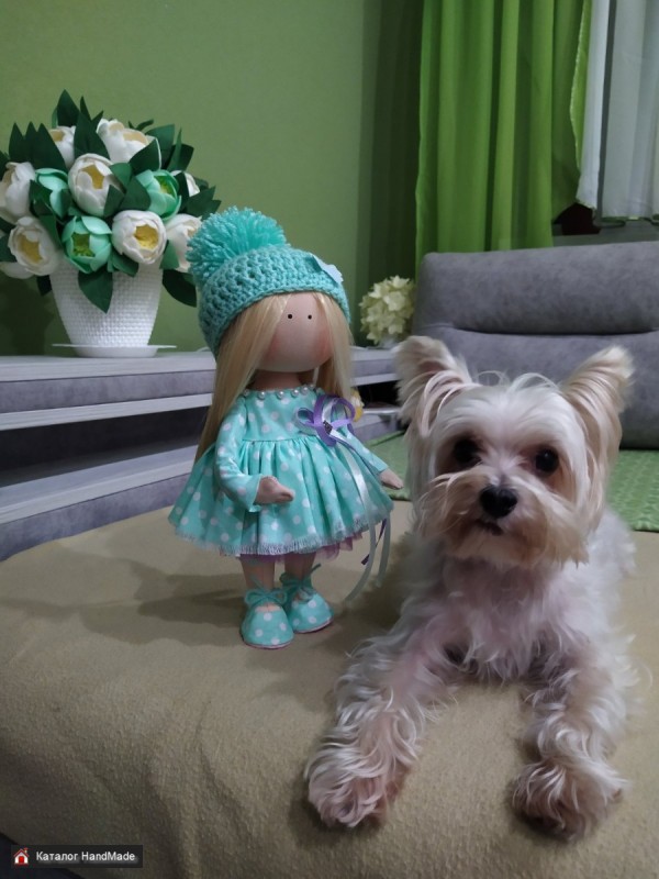 Милая Куколка выполнена в стиле Тильда. Тело выполнено из хлопка и трикотажа. Волосы-кукольный трессы. Куколка самостоятельно стоит и сидит. Почтой и европочтой отправляю