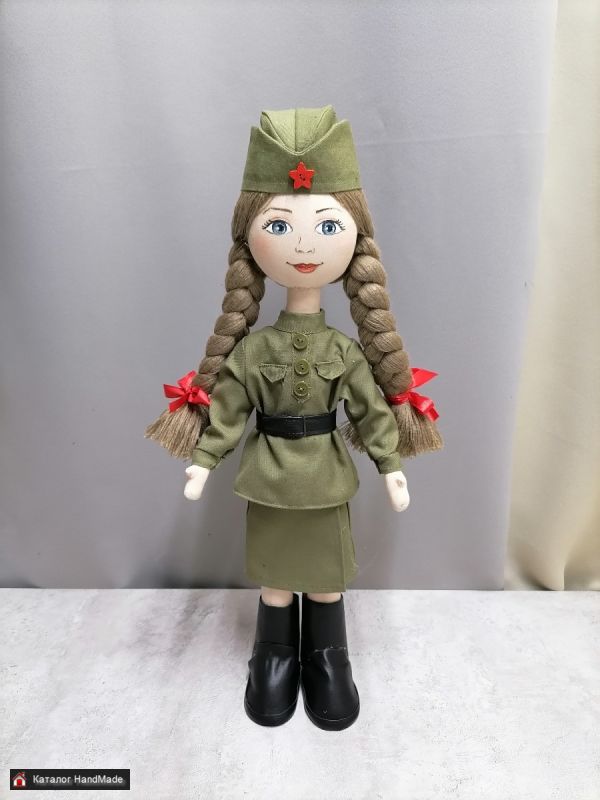 Кукла ручной работы в военной одежде, размер 30 см, внутри проволочный каркас, кукла самостоятельно стоит, лицо нарисовано акриловыми красками