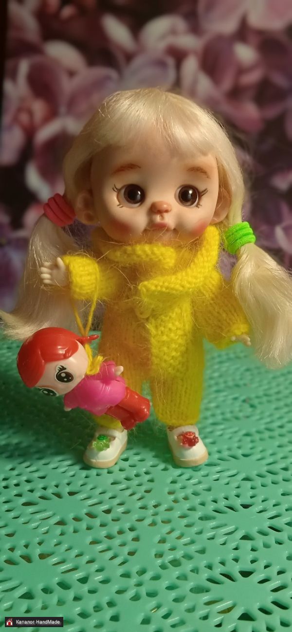 Куколка 12 см. об11. Голова из полимерной запекаемой глины, разъемная. Глазки стекло, подвижные. Волосы натуральные. Парик съёмный.