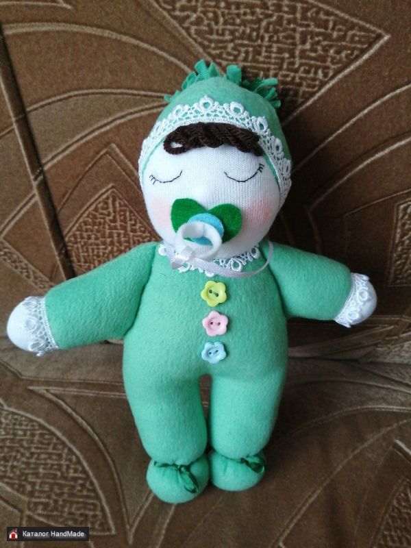 2. Куколка-пупсик текстильная .Наполнена холлофайбером, поэтому очень мягкая и приятная. Высота куколки 25-26 см. ЦЕНА 25 руб.
