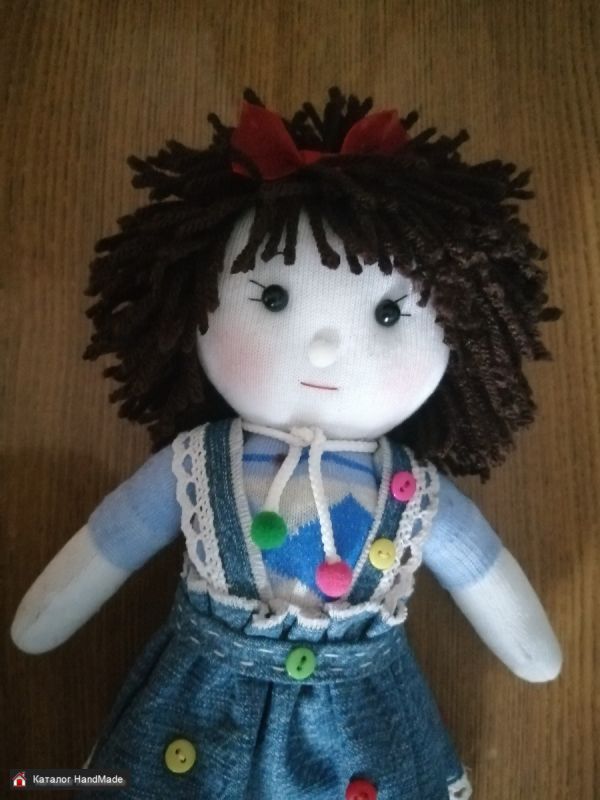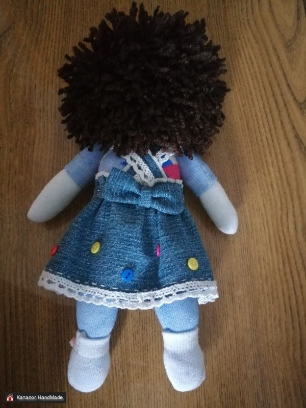 1. Куколка текстильная в джинсовой юбочке ручной работы. Мягенькая, легкая, наполнена холлофайбером. Высота куколки 30 см. Думаю девочки оценят)) ЦЕНА 45 руб.
