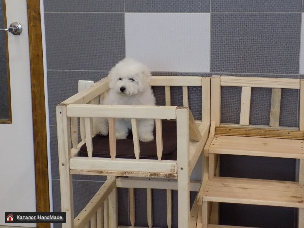 Лежак с домиком для мелких пород собак или крупных пород котов из дерева ручной работы в наличии.