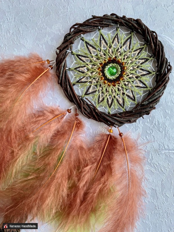 Очень красивые ловцы ручной работы. Красивый предмет интерьера. Использованы только Натуральные материалы - Натуральные перья, Хлопковые/шерстяные нити; пластиковые бусины, основа, выполненная вручную из веточек березы. Диаметр основы около 9-10 см, Общая длина без петельки где-то 31-33 см. Отправляю почтой по полной предоплате. Стоимость указана за один ловец. При покупке трех таких ловцов делаю скидку - 3 ловца за 41 рубль (смотрите др. объявления) Имеется дополнительная белая коробочка для ловца за дополнительную плату - 1 рубль (выполняет роль подарочной коробочки).