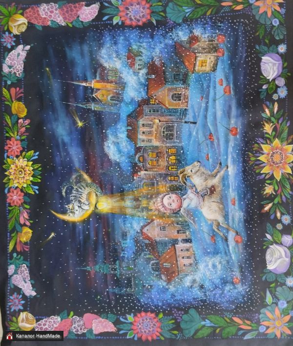 Двунитка черная, акриловые краски по ткани, можно натягивать на подрамник, не боится стирок, 90-80 см