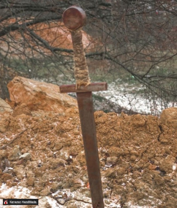 Мечи сделаны вручную из лыжной палки, акрил, кожа. В кадре смотрятся, как настоящие. Очень лёгкие. Есть железный. Куплен на ярмарке мастеров в Москве...