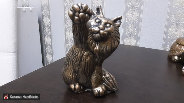 Мейн-кун аборигенная порода американских кошек. Представители породы -это надёжные друзья и компаньоны, способные быстро завоевать любовь всей семьи. Фигурка кота будет долго напоминать вам о вашем пушистым друге если предстоит долгая разлука с ним. Изделие изготовлено из гипса. Размер Д-9 см. Ш- 7см. В -14 см. Весит котик 330г. Расцветка планируется трех цветов, как на фото, с белым оттенком и под античную бронзу покрытую перламутром. Изготовление под заказ. Срок изготовления 5-10 дней. Предоплата 100% на карту банка. Пересылка по почте наложным платежом.