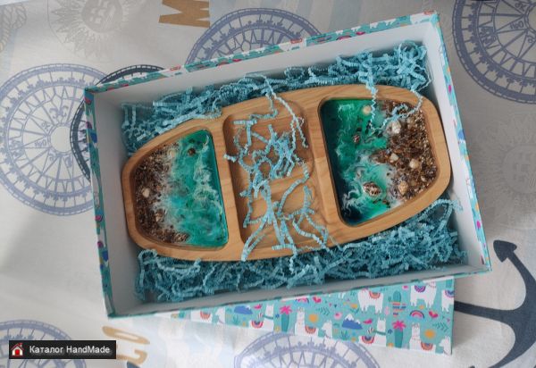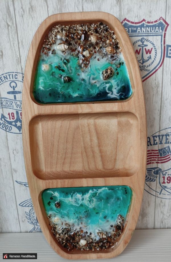 Можно положить сыр,орехи,фрукты и другое разнообразие явст :) В длину 30 см, обработана льняным масло для сохранения древесины и многократного использования.