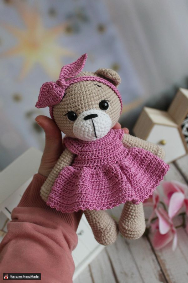 Мишутка в платье. Для маленьких ручек. Ростом примерно 20см. Одежда снимается.