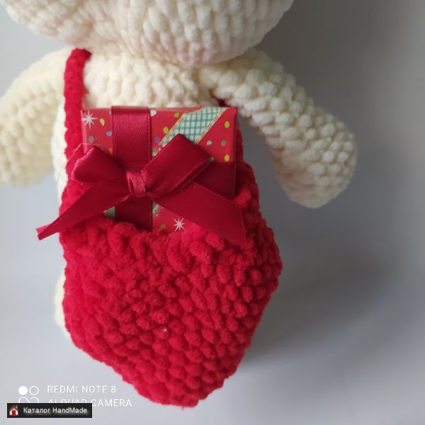 В День Святого Валентина этот медвежонок в своей сумочке может подарить близкому и дорогому человеку маленький сувенир или записку со словами, которые давно хотели сказать