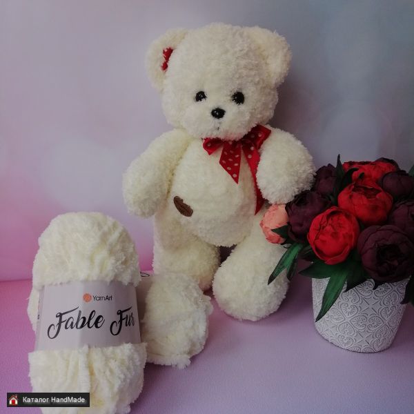 Рост игрушки 40 см. Связан из меховой пряжи Fable Fur.