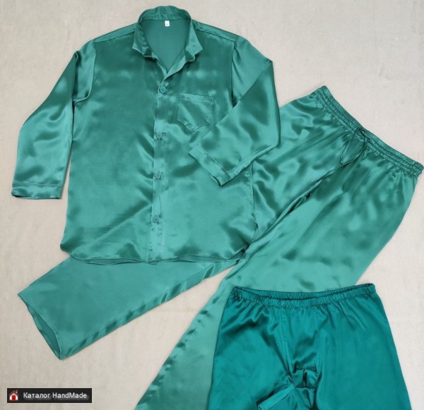 Элегантная мужская пижама из 100% натурального шёлка ручной работы