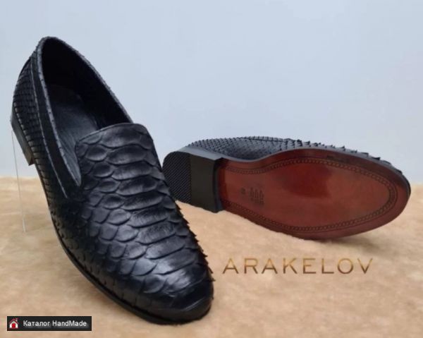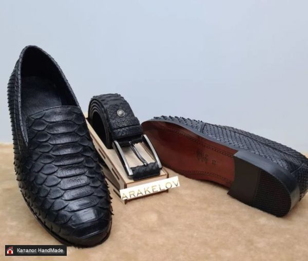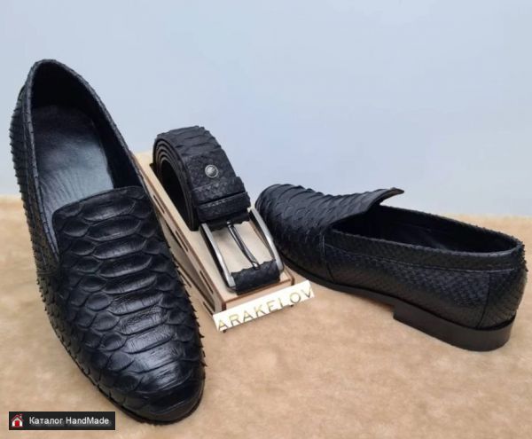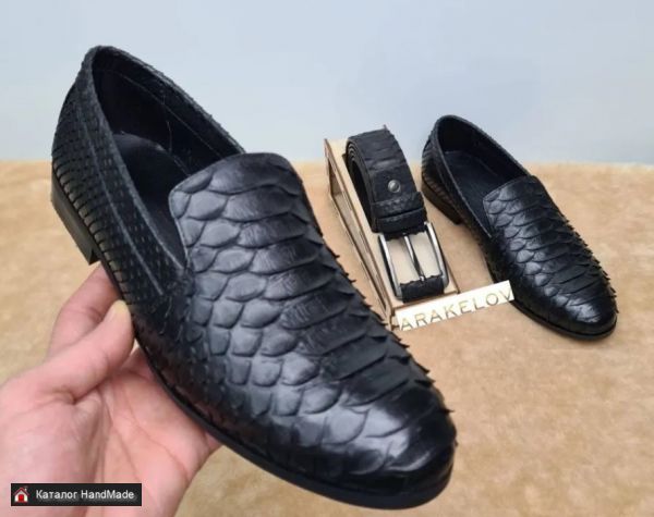 Мужские туфли классической формы из натуральной кожи питона в элегантном черном цвете.