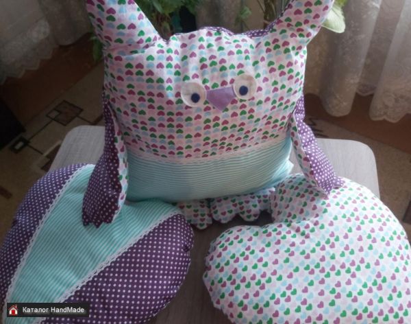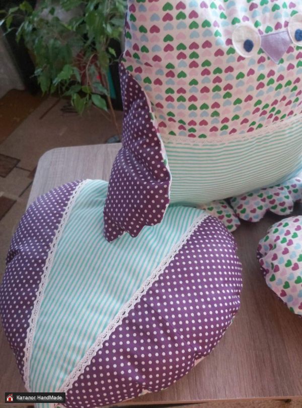 Комплект подушечек детский: Сова, Сердечки. Ткань: бязь х/б,. Наполнитель: Синтепон. Цена за комплект Возможна продажа по отдельности