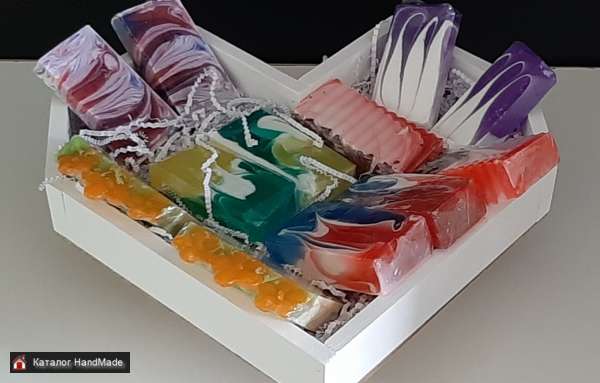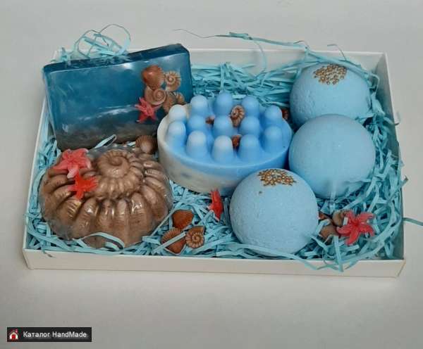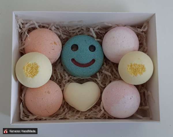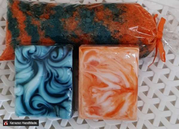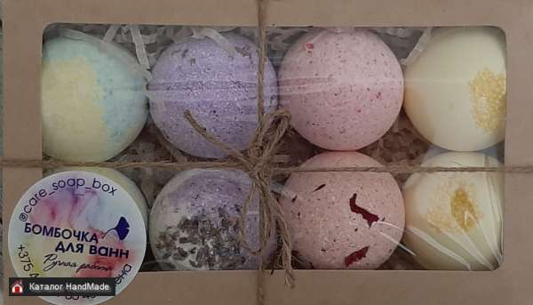 Наборы мыла ручной работы, бомбочки для ванн, сахарные скрабы, соль для ванн различных цветов и ароматов. Наполняемость по выбору клиента.