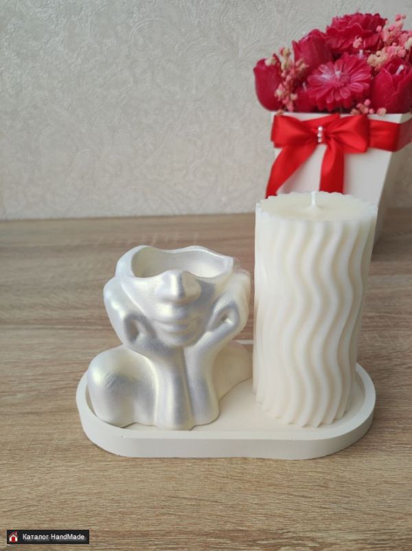 Набор гипсовый из шкатулки, подноса и свечи прекра ...