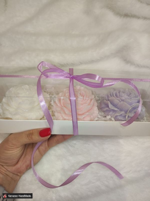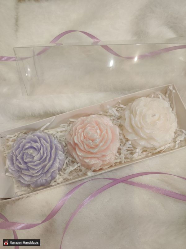 Набор из свечей ручной работы "ПИОНЫ" в упаковке (3шт) в нежных постельных оттенках станут прекрасным подарком для ваших близких