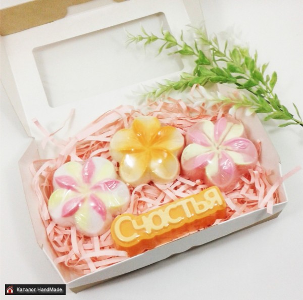 Такой набор мыла ручной работы понравится любой женщине и аромат бесподобный) Вес мыла в наборе 270г. Аромат цветочный. Каждое мыло изготовлено из мыльной основы Soaptima, красителя и отдушки. Упаковано мыло в термоусадочную пленку. В качестве подарочной упаковки - крафт коробка Tabox 1000мл. Огромная просьба связываться со мной только в социальных сетях или месседжерах!)