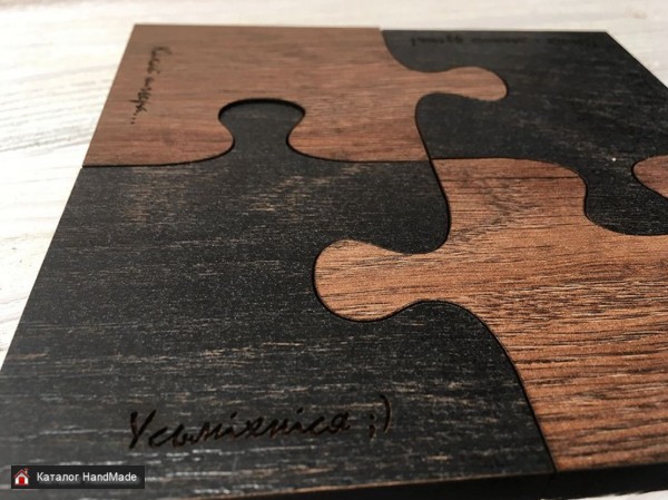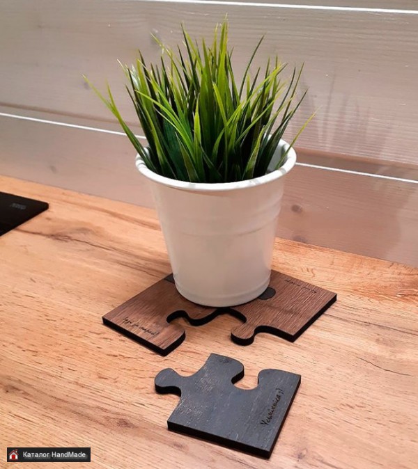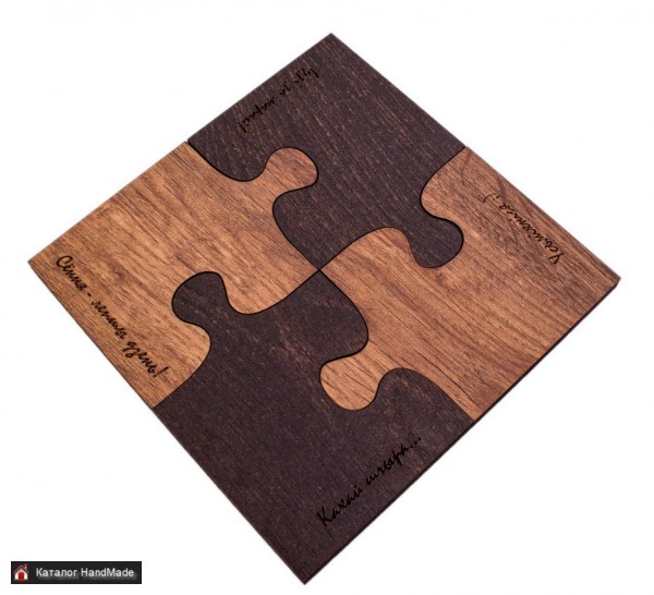 Набор из четырёх подставок, которые можно использовать как подставки под кружки, так и, собрав пазл, поставить горячую кастрюлю или сковороду. Фразы на каждой подставке на белорусском языке: "Усьміхніся", "Сення - лепшы дзень", "Кахай шчыра...", "Ідзі за марай!" станут хорошим девизом для начала успешного дня. Подставка под горячее "Пазл" не только незаменимая вещь для каждого дома, но и стильный, практичный подарок друзьям и близким. Размер набора: 15,2x15,2 см. Размер одного элемента: 10,5x7,6 см. Материал: ламинированное прессованное ДВП. Упаковка: пакет с еврослотом. Советы по уходу: Можно мыть под струей воды, после чего протереть насухо. Не рекомендуется оставлять в воде. Не рекомендуется мыть в посудомоечной машине.