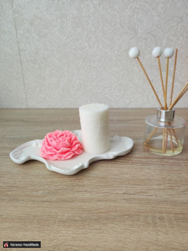 Набор гипсовый из шкатулки, подноса и свечи прекра ...