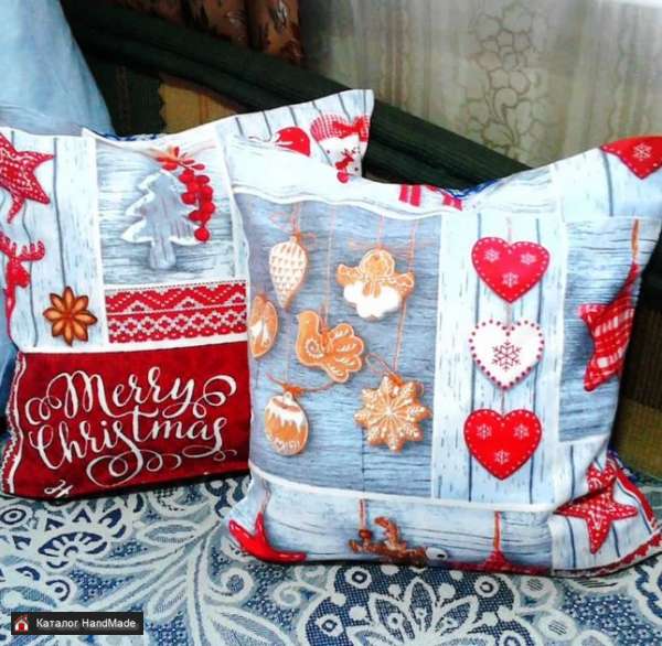 Наволочка-декоративная, ручная работа, выполнена из 100% хлопка, ткань плотная. Одна сторона рисунок-новогодний, обратная сторона - имеет другой рисунок - Синий фон и снежинки. Наволочка на молнии. Замечательный подарок, который добавит уюта и тепла. Размер 40 х 40 см. Цена за 2 шт. в комплекте.