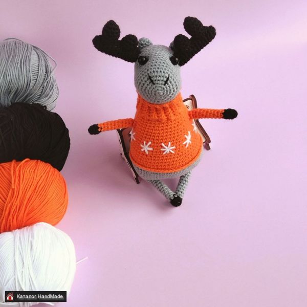 У забавного лося с прекрасными рожками и милой мордочкой сегодня просто отличное настроение, ведь ему предстоит отправиться в настоящее путешествие к своему хозяину!