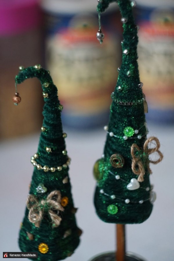 Ёлочки красавицы сделаны с любовью . Бархатные зелёные нити, элементы декора, акриловый лак. Высота от 25 см до 40 см.