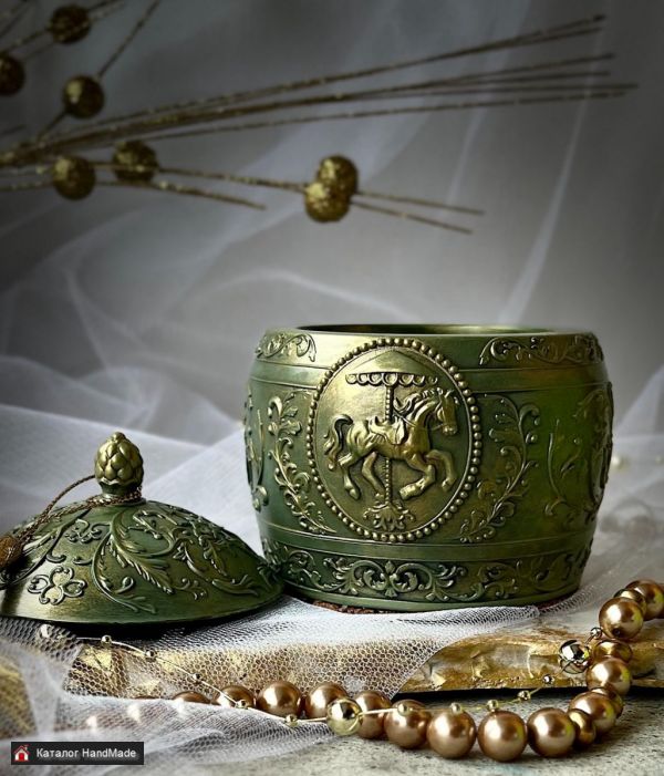 После использования свечи сама карусель может послужить шкатулкой для любимых украшений ,а можно вернуть ее мне и я залью для Вас новую свечу ,за вычетом стоимости шкатулки.