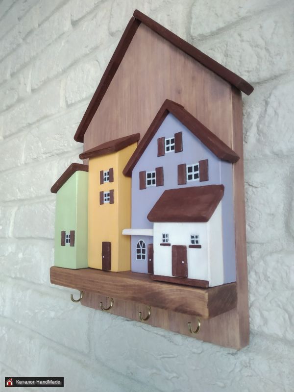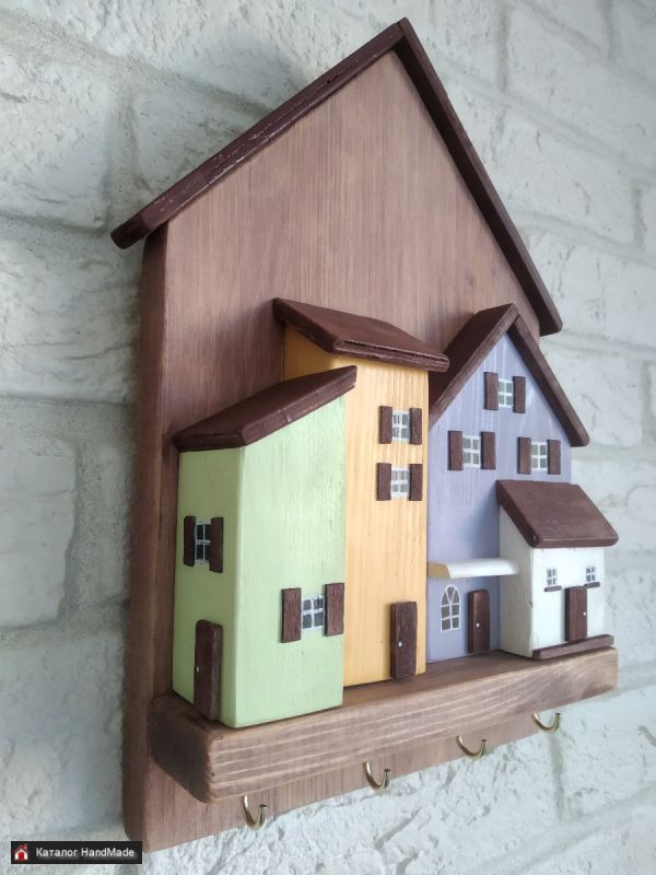 Объемное интерьерное декоративное панно - ключница ручной работы "Квартал". Отличный подарком для Вас и Ваших близких, друзей, родственников, коллег. Подарок на любой случай - как декоративный предмет интерьера, на праздник, новоселье, украшение дома. Изготовлен из дерева, покрытие - тонированный масловоск, акриловые краски, лак. Размер 31х22х6 см. Доставка Европочта, Белпочта. Стоимость указана с учётом доставки. Смотрите также другие мои объявления.