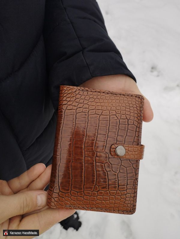 Изготовлена полностью в ручную из натуральной кожи. Вмещает в себя паспорт, весь набор автодокументов, 4 отдела для карт