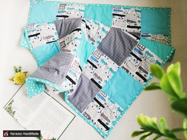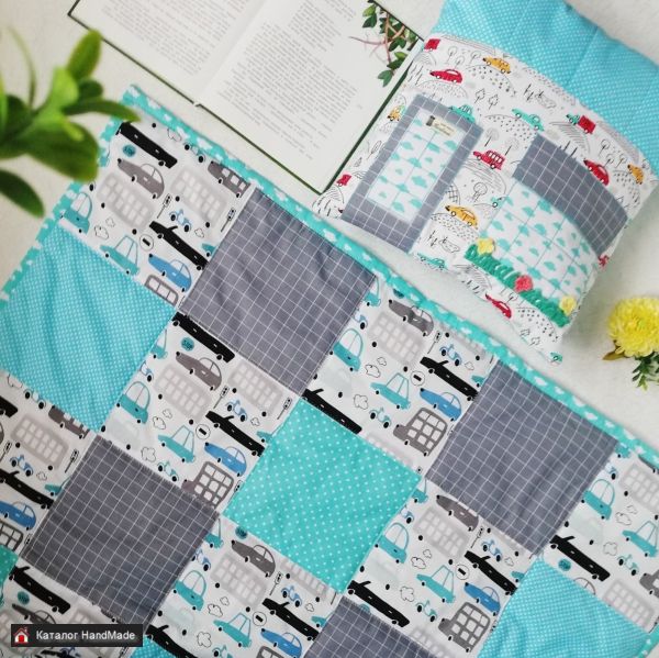 Дополнительно к одеялу можно купить подушечку, также заказать гирлянду из флажков, корзину для игрушек и др. изделия .