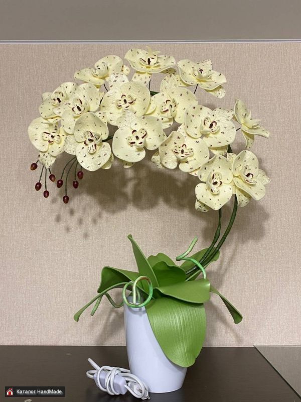 Орхидея цвета шампань в краптнку- светильник ручной работы. Высота 60см. Две светодиодные лампочки, 15 цветков.