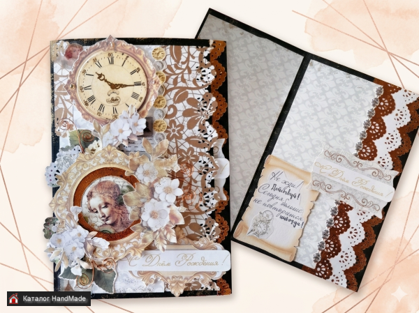 Открытка винтажная из картона и бумаги, цвет-золото