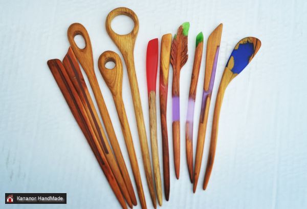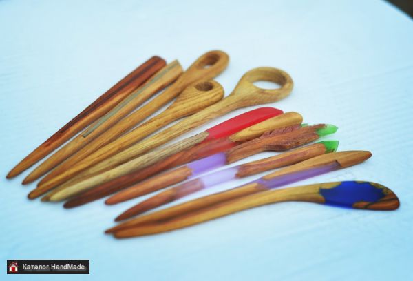 Палочки для волос из дерева. Оригинальный дизайн. Разный размер. С использованием эпоксидной смолы. Дерево - Вишня, Слива, Дуб. Некоторые светятся в темноте.